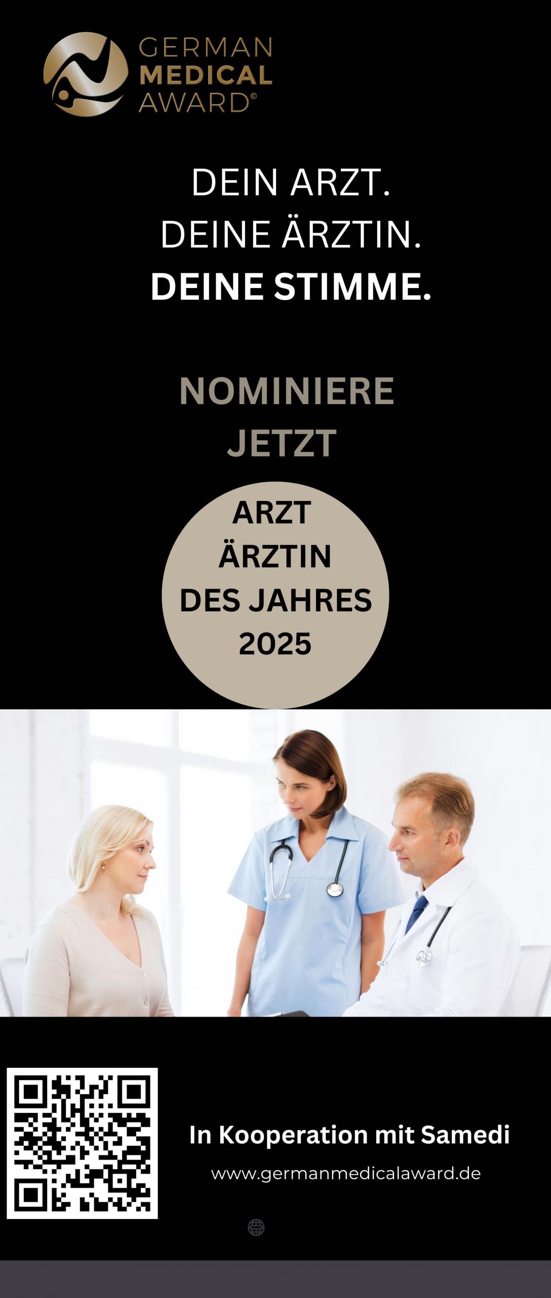 Patientenstimme. Nominieren Sie Ihre Ärztin / Ihren Arzt und machen Sie sie zur Ärztin des Jahres oder zum Arzt des Jahres 2025!